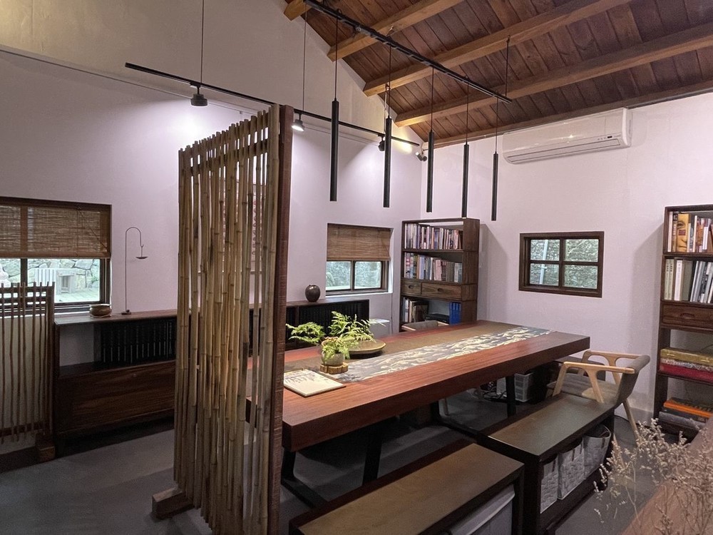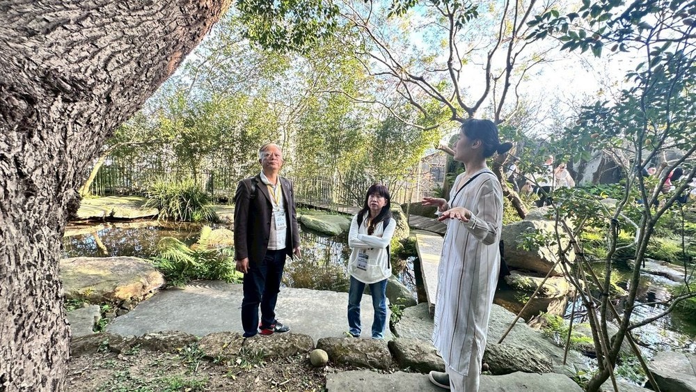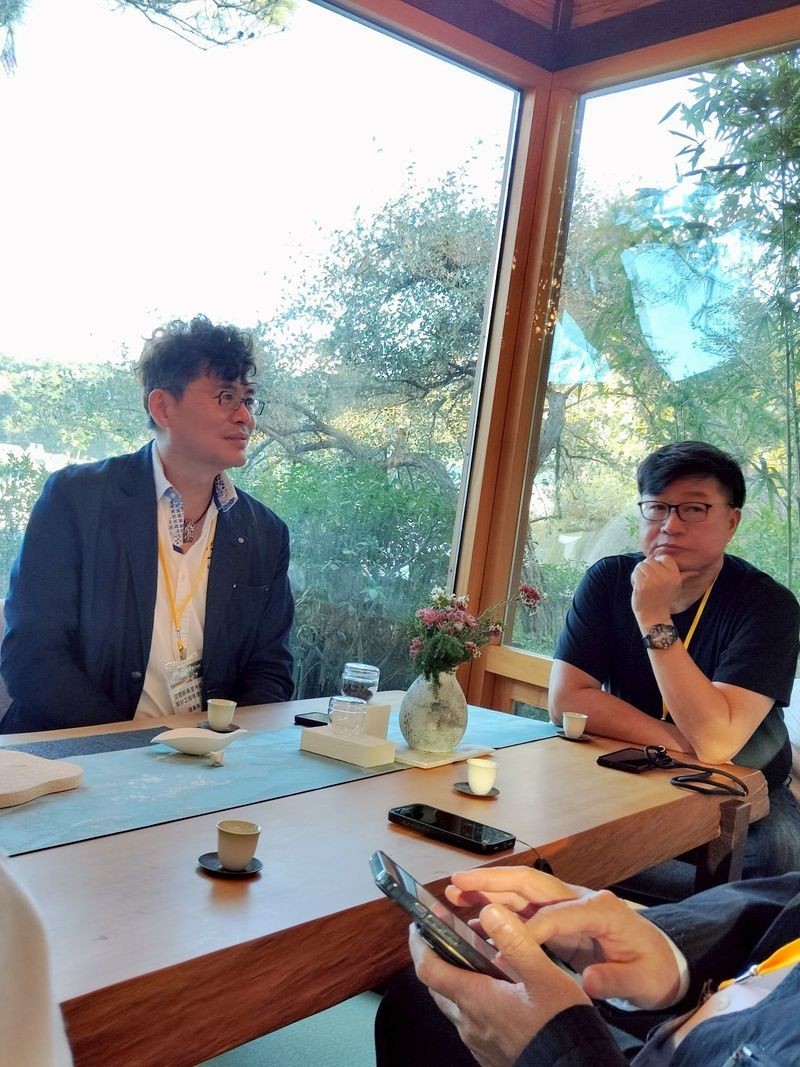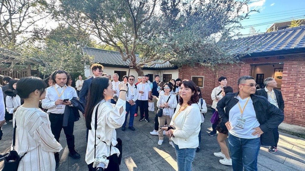 下午則參訪位於苗栗三義的三漫茶院落,由王建築師創立,以茶文化與生活美學為核心,園區由兩座舊三合院改建而成,透過細膩的空間規劃,結合自然植栽與人工造景,營造靜謐而富詩意的園林意境。三漫茶院落採預約制經營,提供沉浸式茶席體驗,並不定期舉辦茶文化講座、藝術展覽與交流活動,串聯年輕藝術家,將茶道精神與陶藝、木雕、玻璃等工藝創作相互融合,形塑一處結合文化、藝術與設計思維的交流場域。